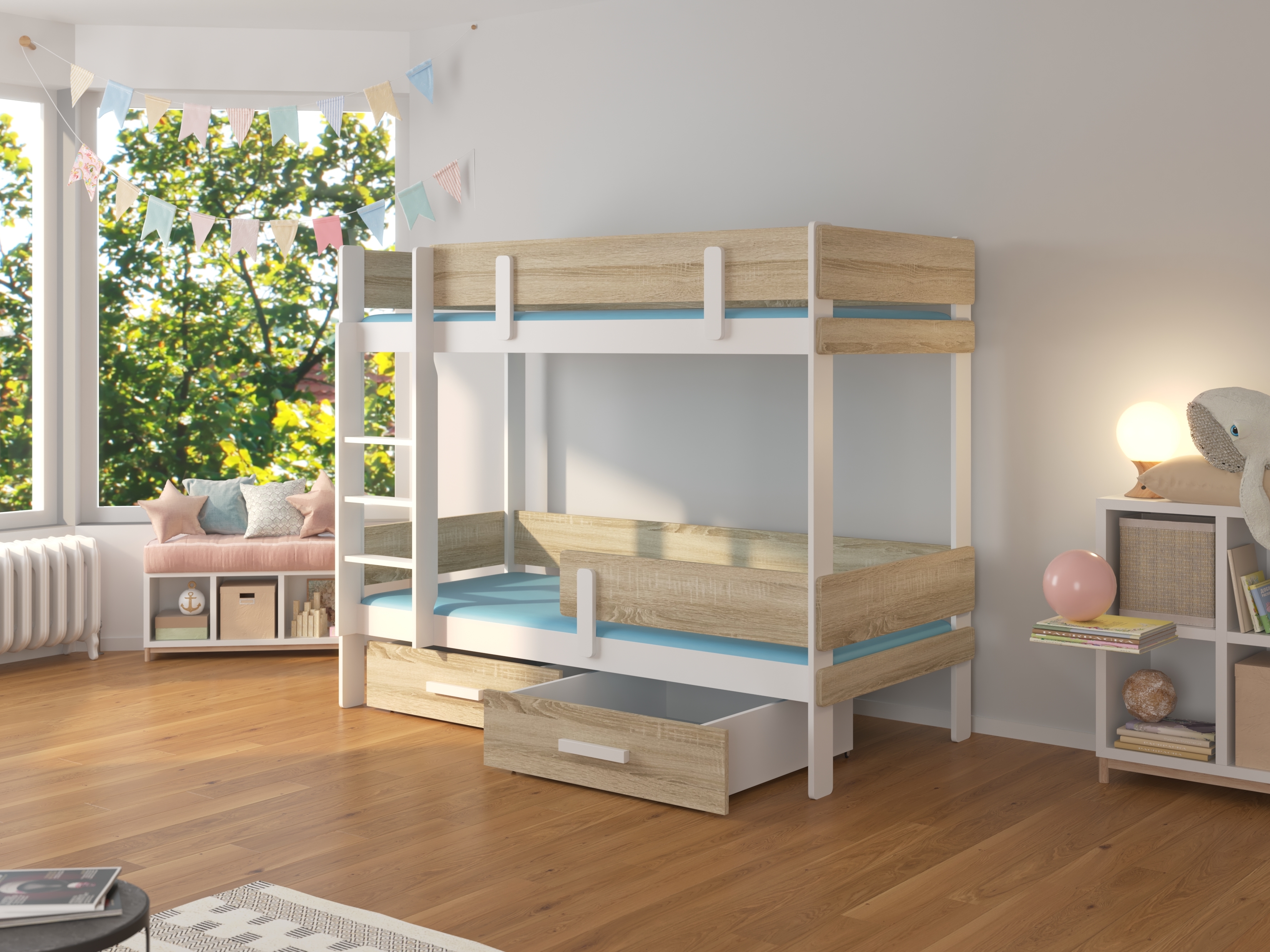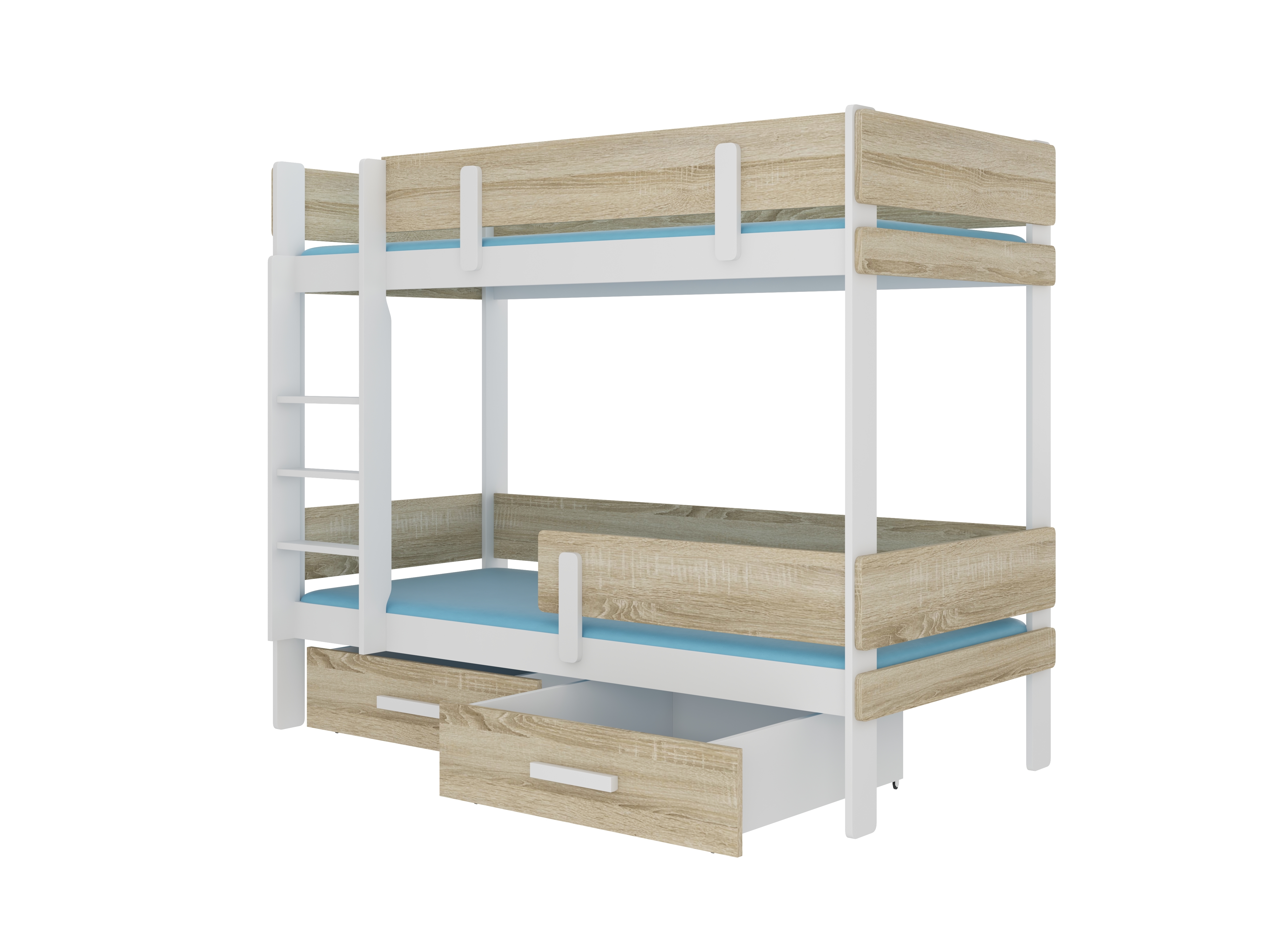 Dječji krevet na kat 180x80 cm Ellen (s podnicom i madracem) (bijela + hrast sonoma)