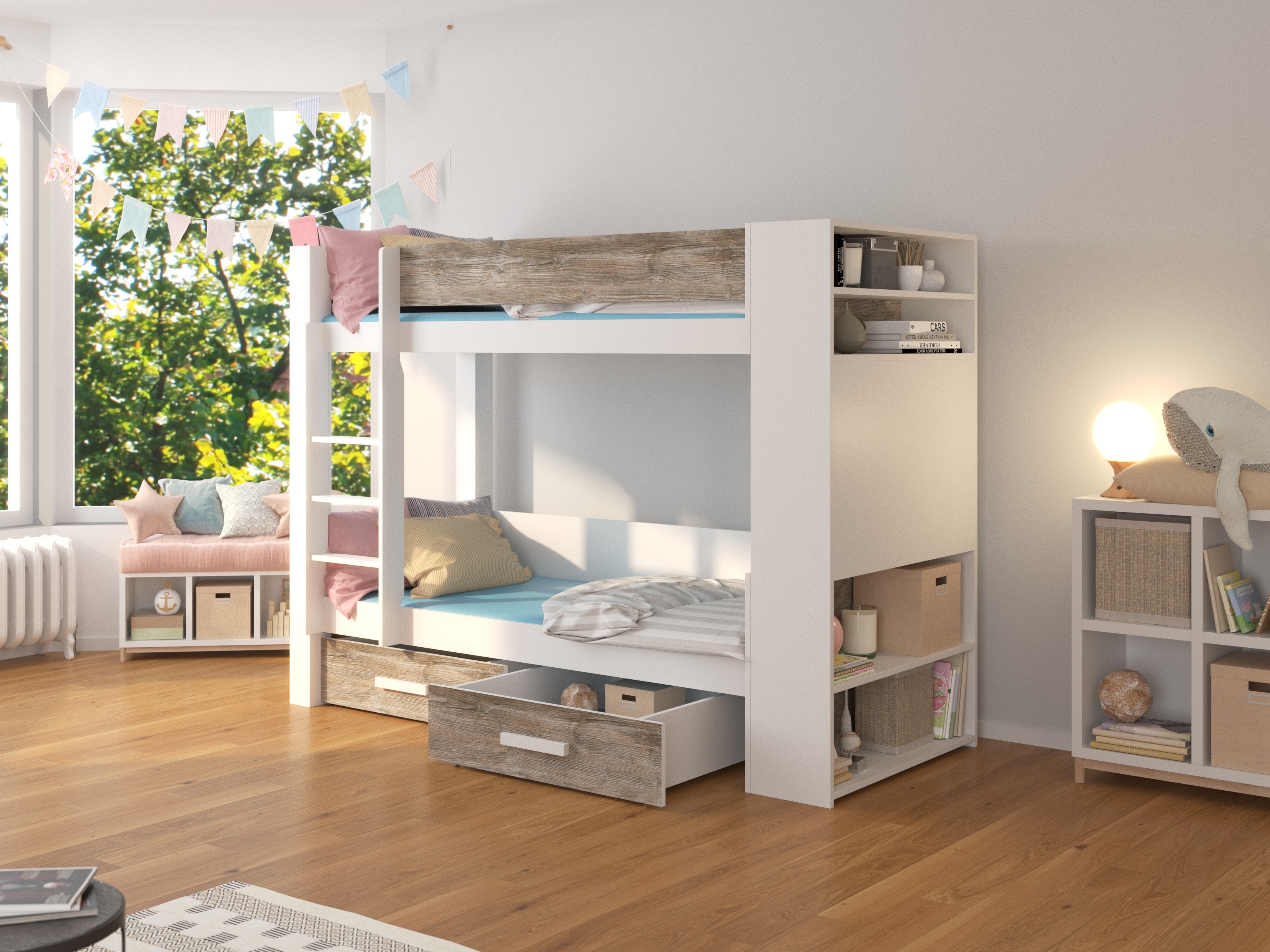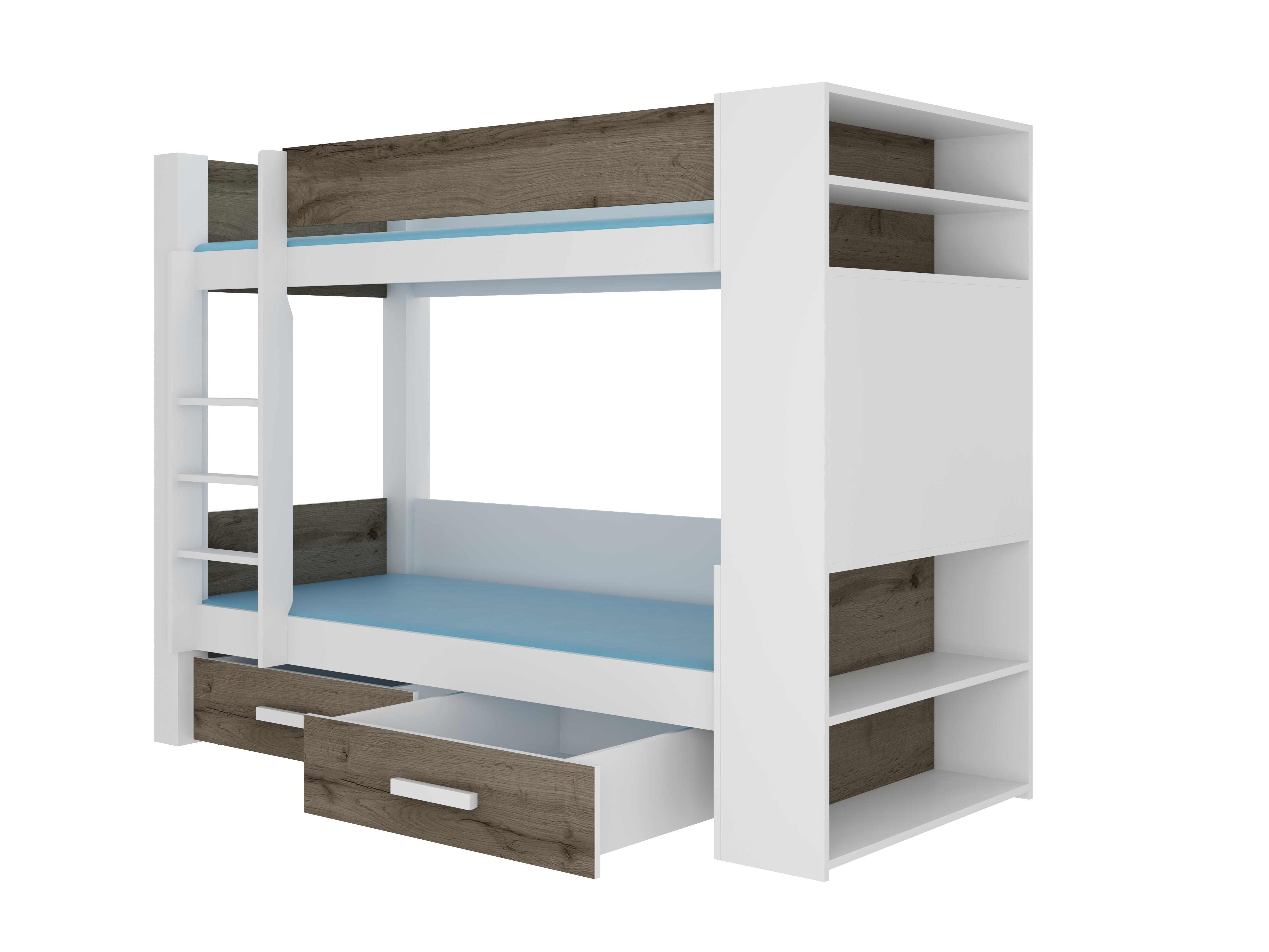 Dječji krevet na kat 180x80 cm Gabriela (s podnicom) (bijela + hrast sivi)