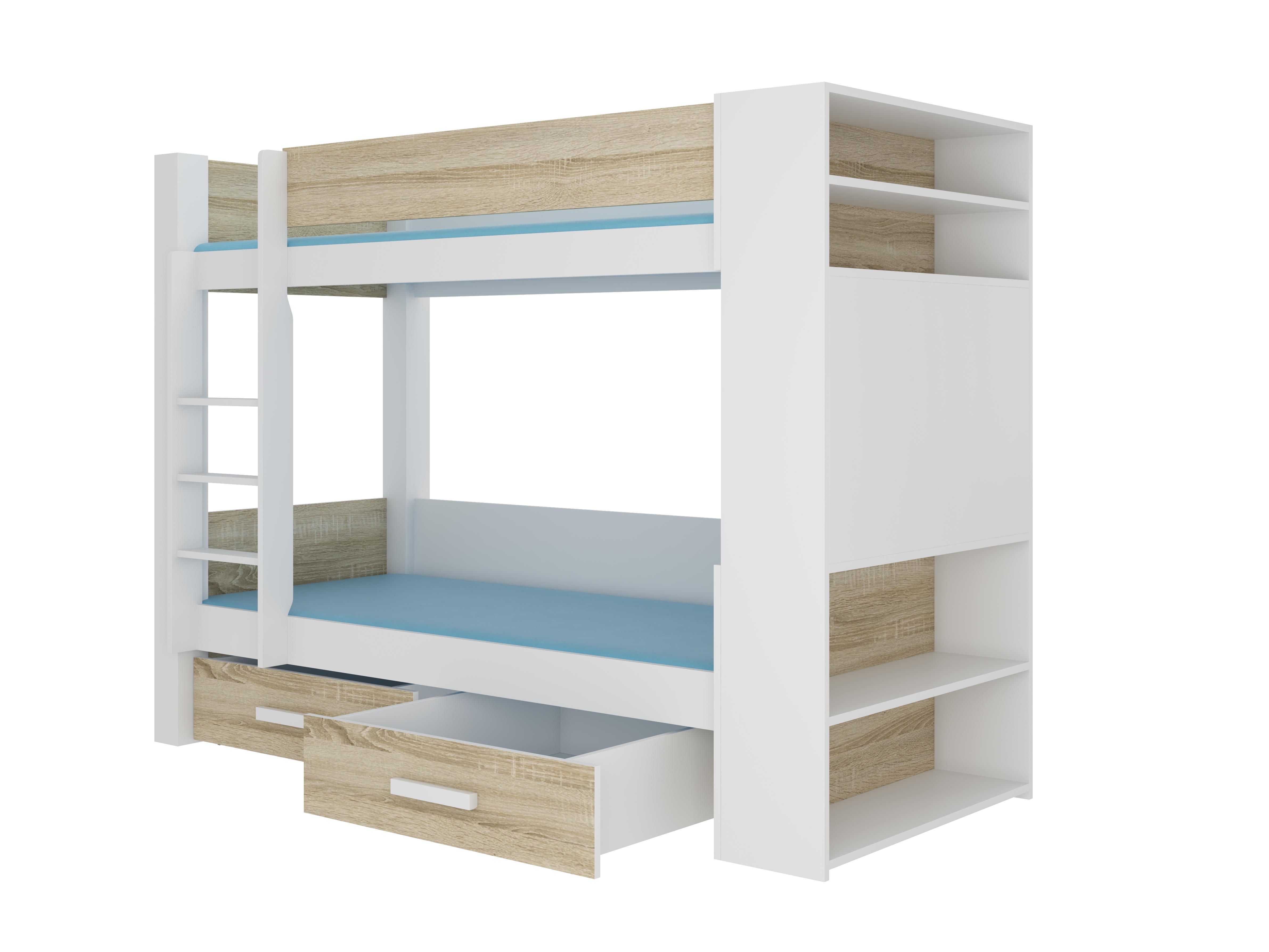 Dječji krevet na kat 180x80 cm Gabriela (s podnicom i madracem) (bijela + hrast sonoma)
