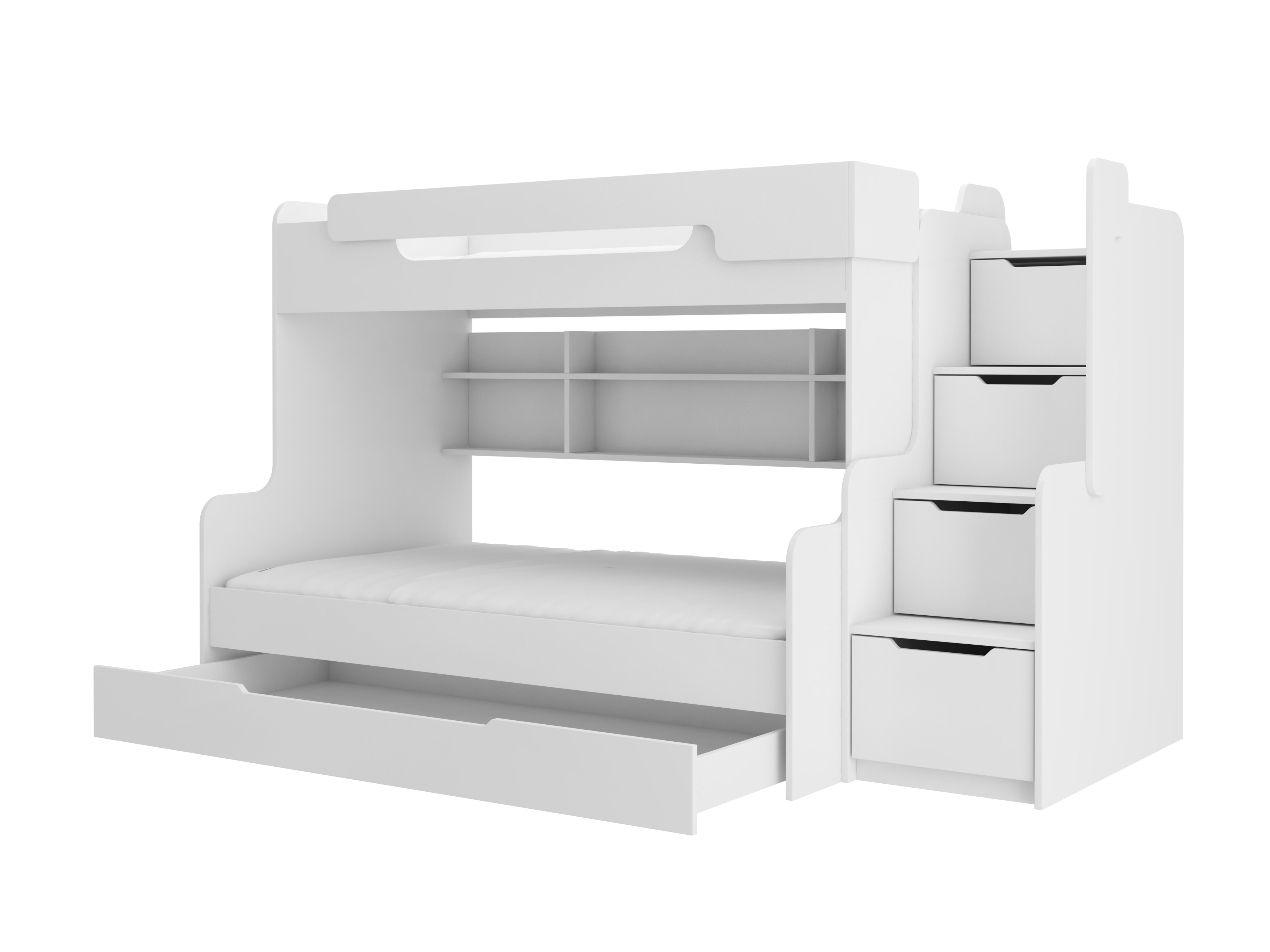 da, 1x ladica na izvlačenje, bočne stepenice s prostorom za odlaganje i sustav polica iznad donjeg kreveta