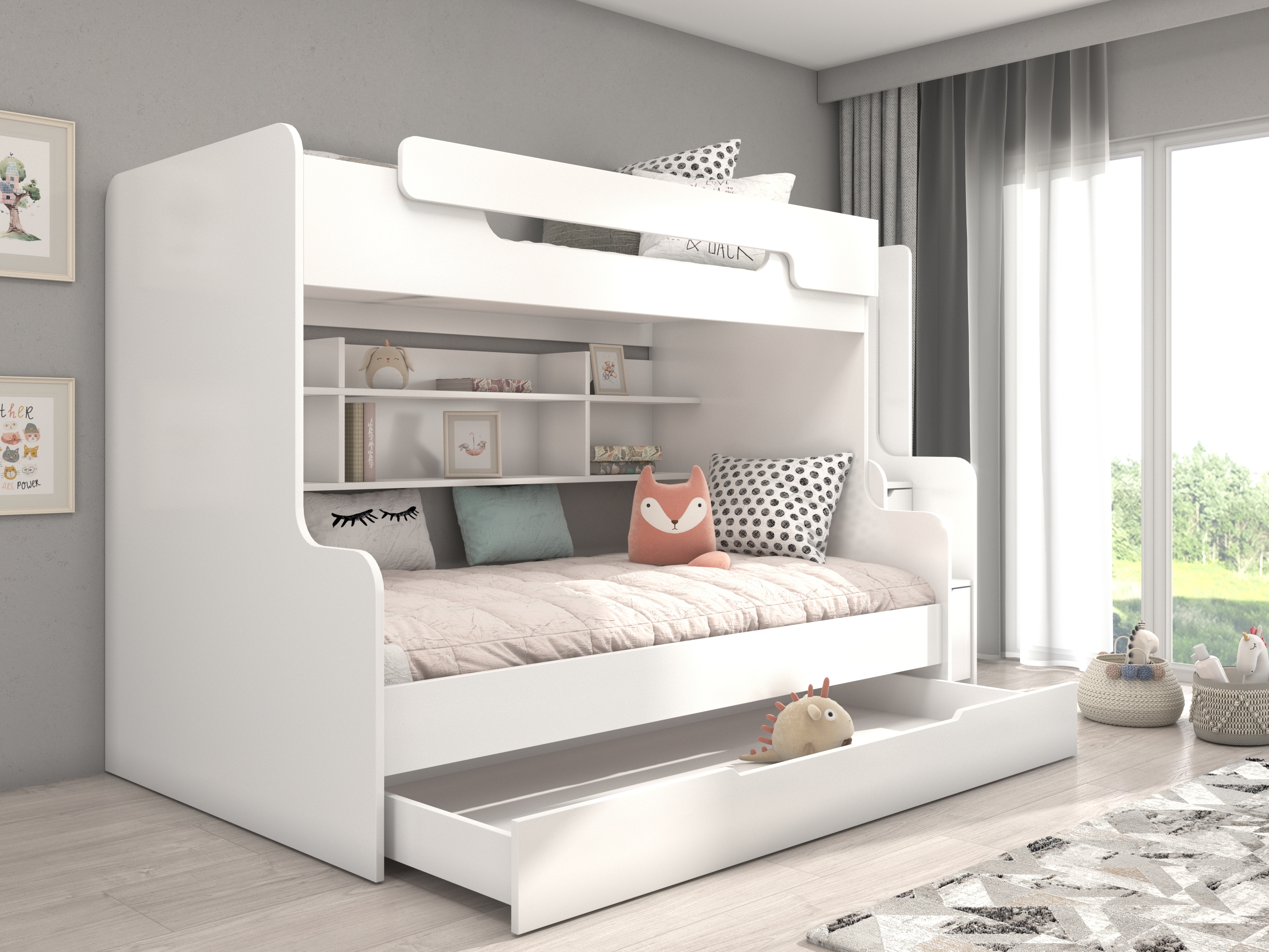 Dječji krevet na kat 200x90 cm, 200x120 cm Homer (s podnicom i madracem) (bijela)