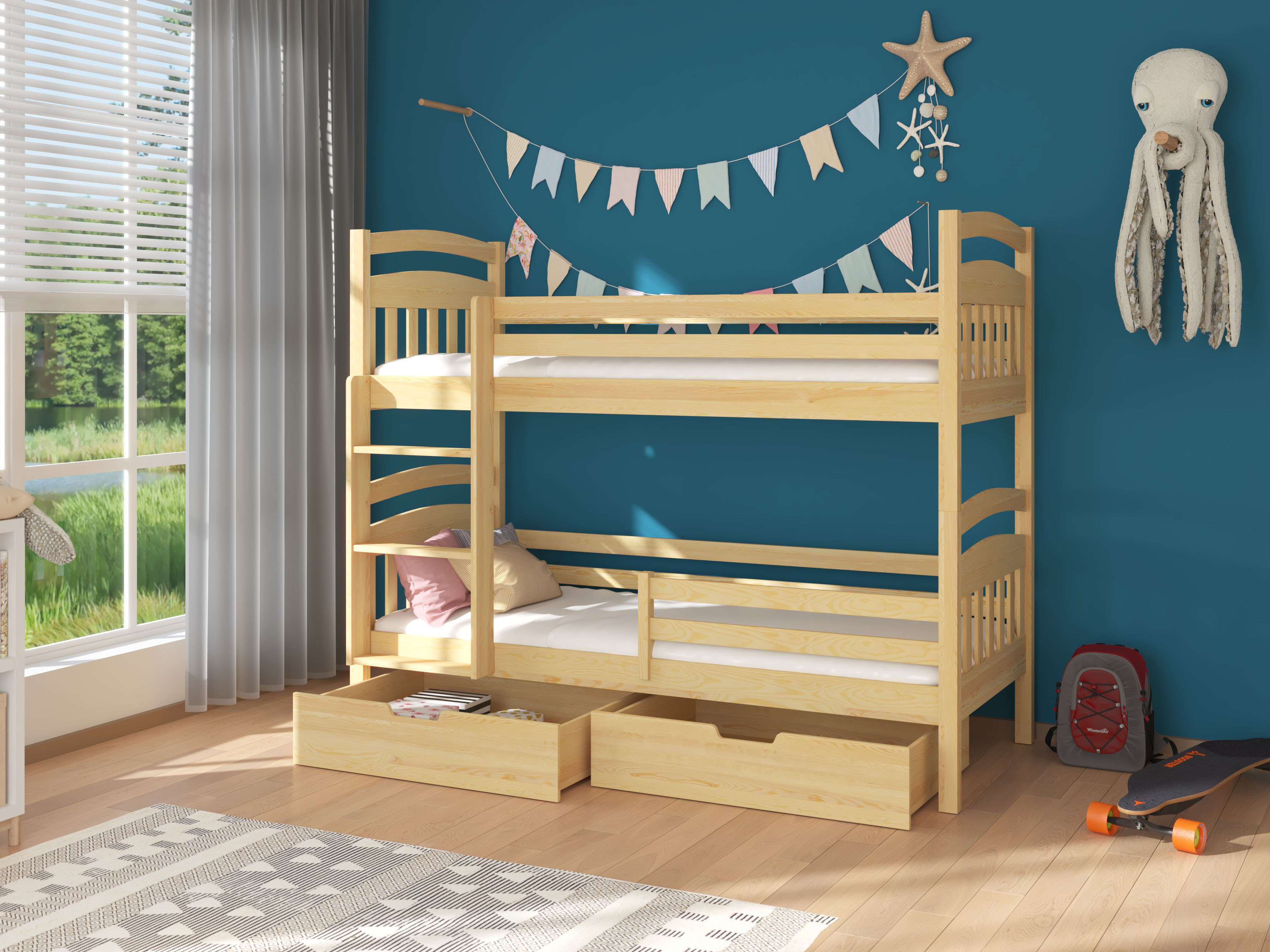 Dječji krevet na kat 200x90 cm Adriana (s podnicom i madracem) (bor)
