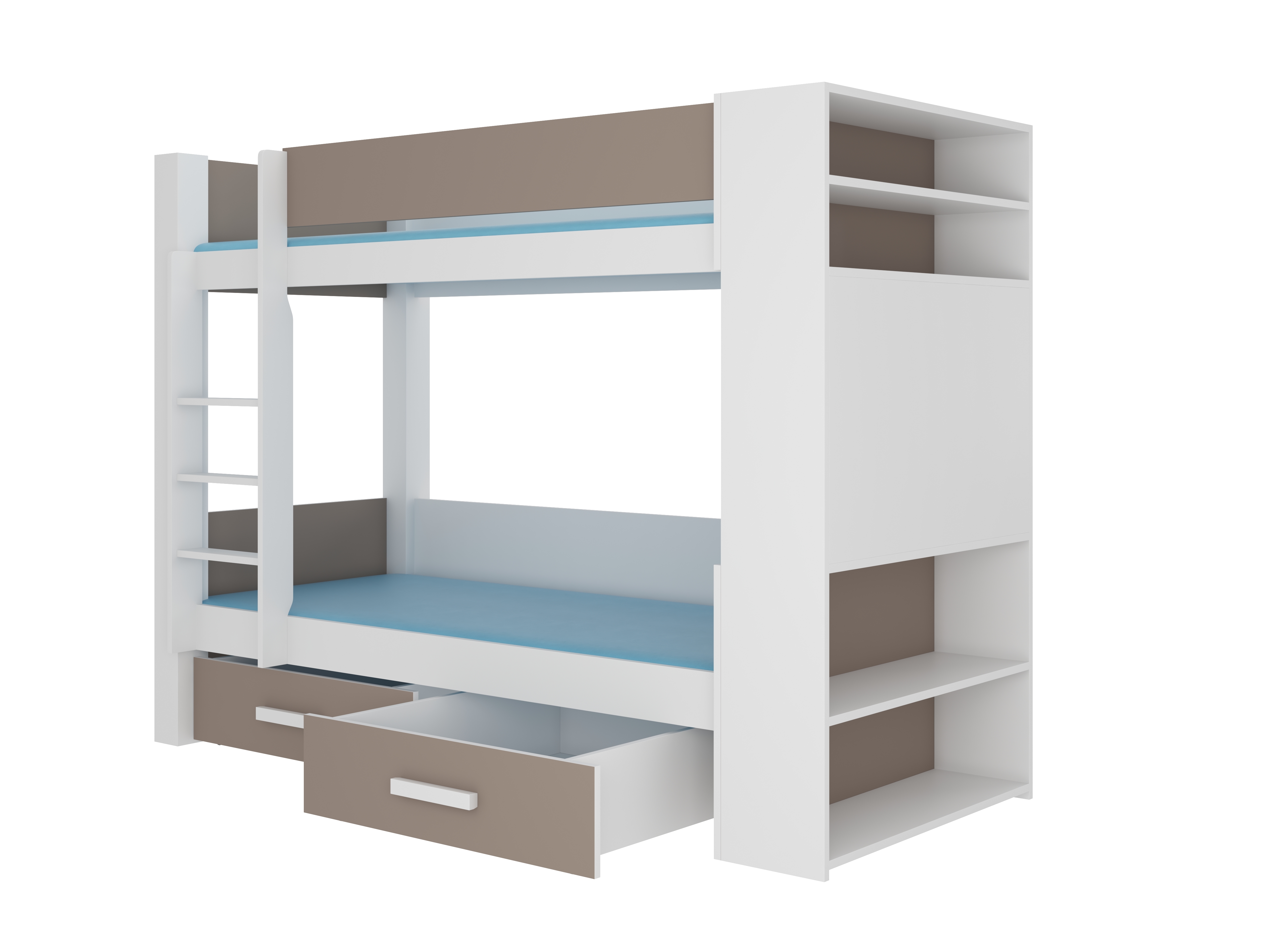 Dječji krevet na kat 200x90 cm Gabriela (s podnicom i madracem) (bijela + tartuf)
