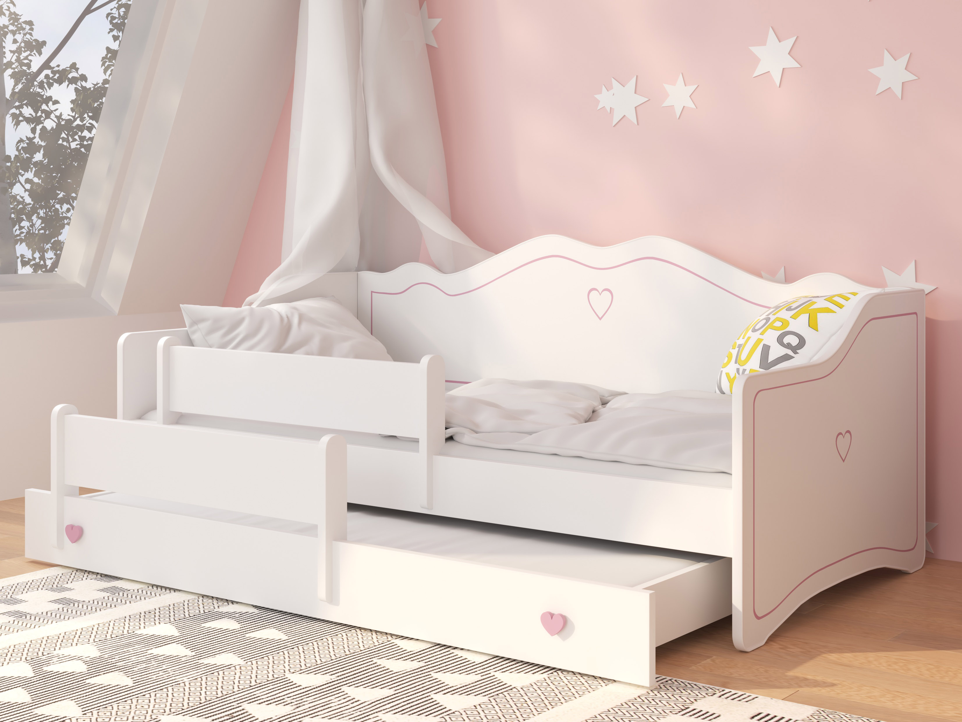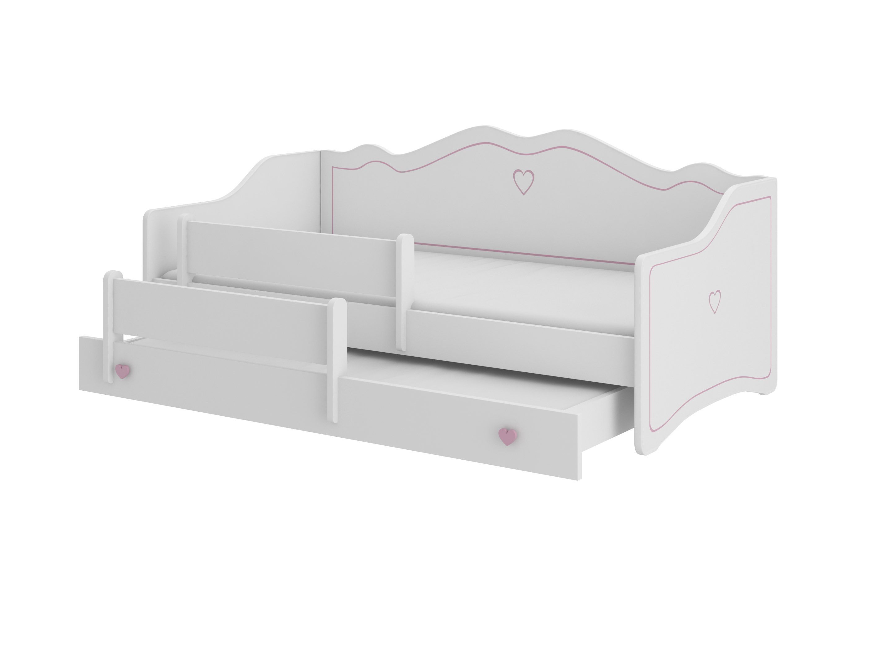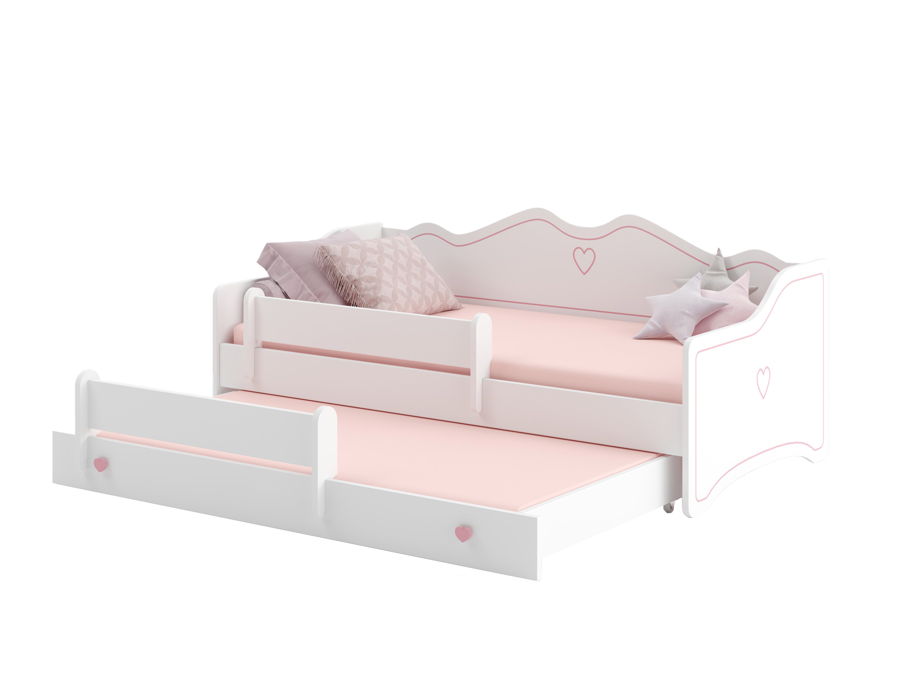 Dječji krevet na razvlačenje 160x80 cm Ester II (s podnicom i madracem) (bijela + ružičasta)