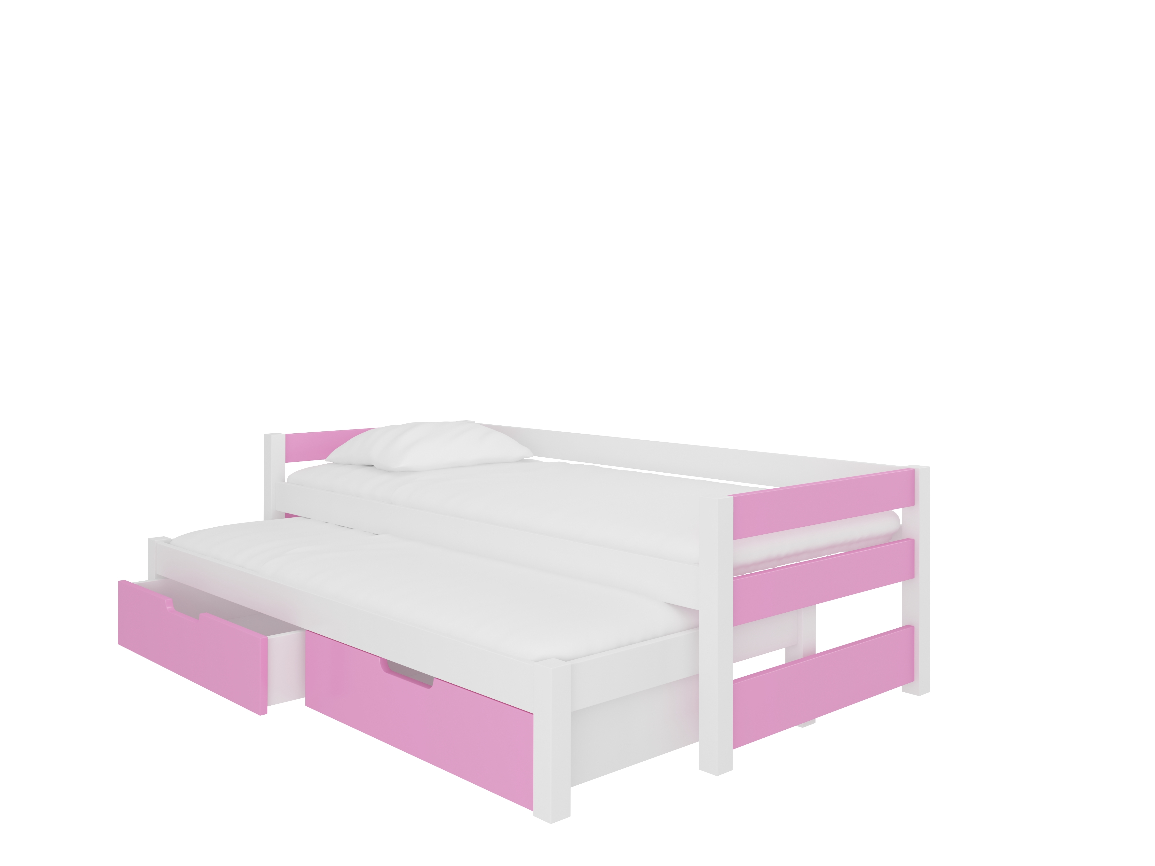 Dječji krevet na razvlačenje 200x90 cm Fifo (s podnicom i madracem) (bijela + ružičasta)