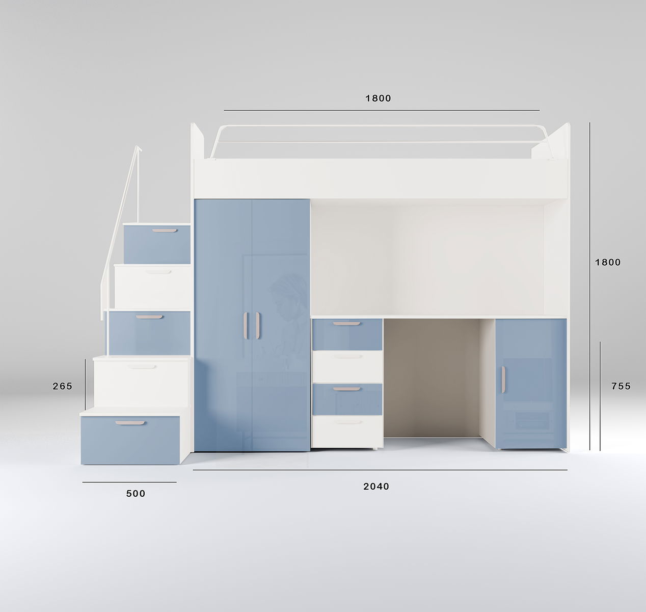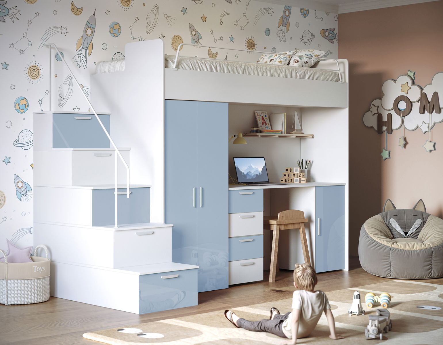 Dječji krevet Ruby IV S (bijela + svijetloplavi sjaj) (s podnicom)