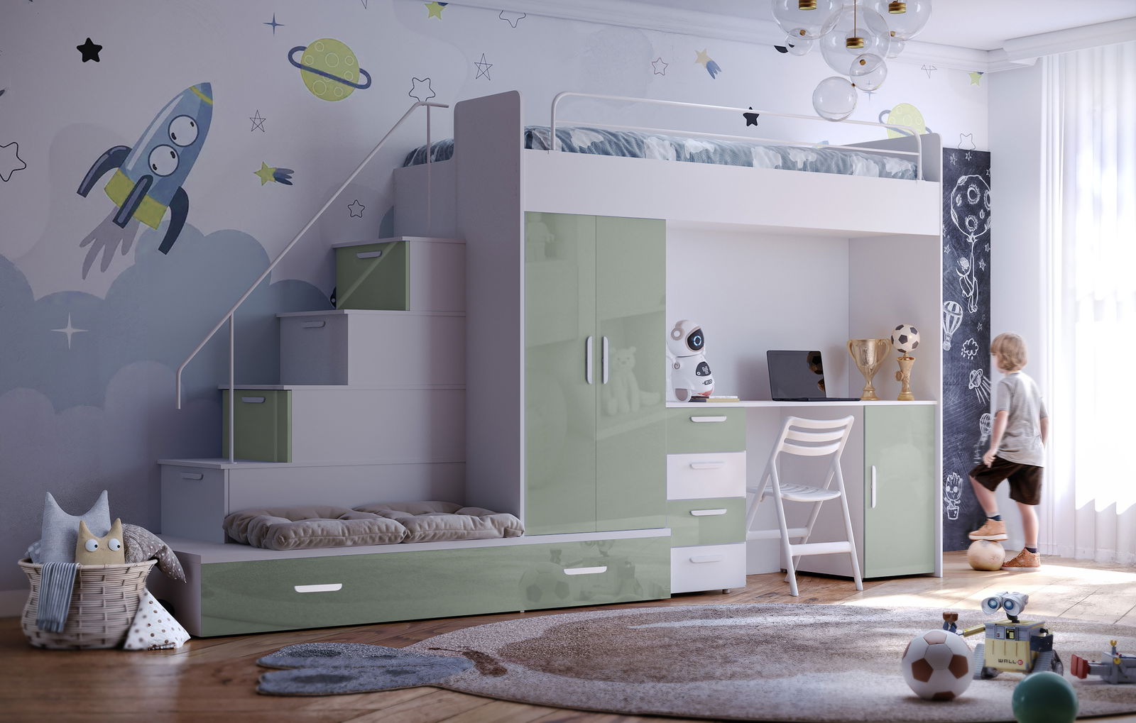 Dječji krevet Ruby V (bijela + mint sjaj) (s podnicom)