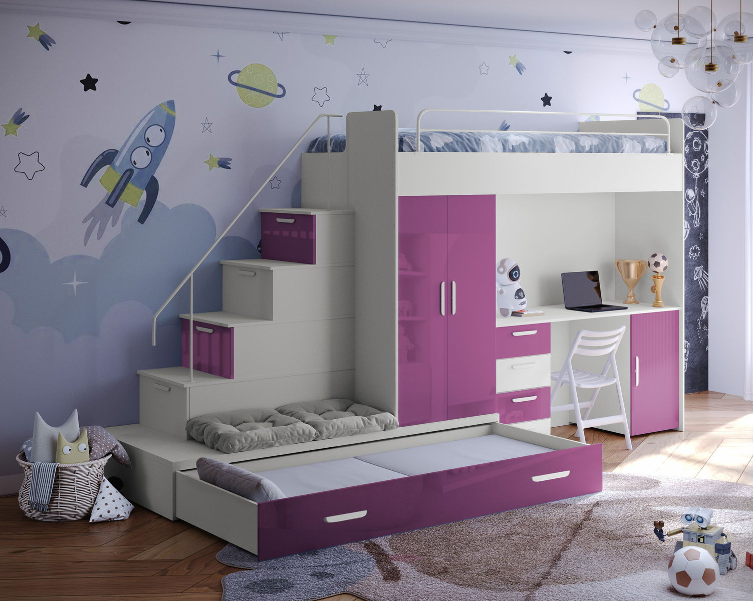 Dječji krevet Ruby V (kašmir + ružičasti sjaj) (s podnicom)