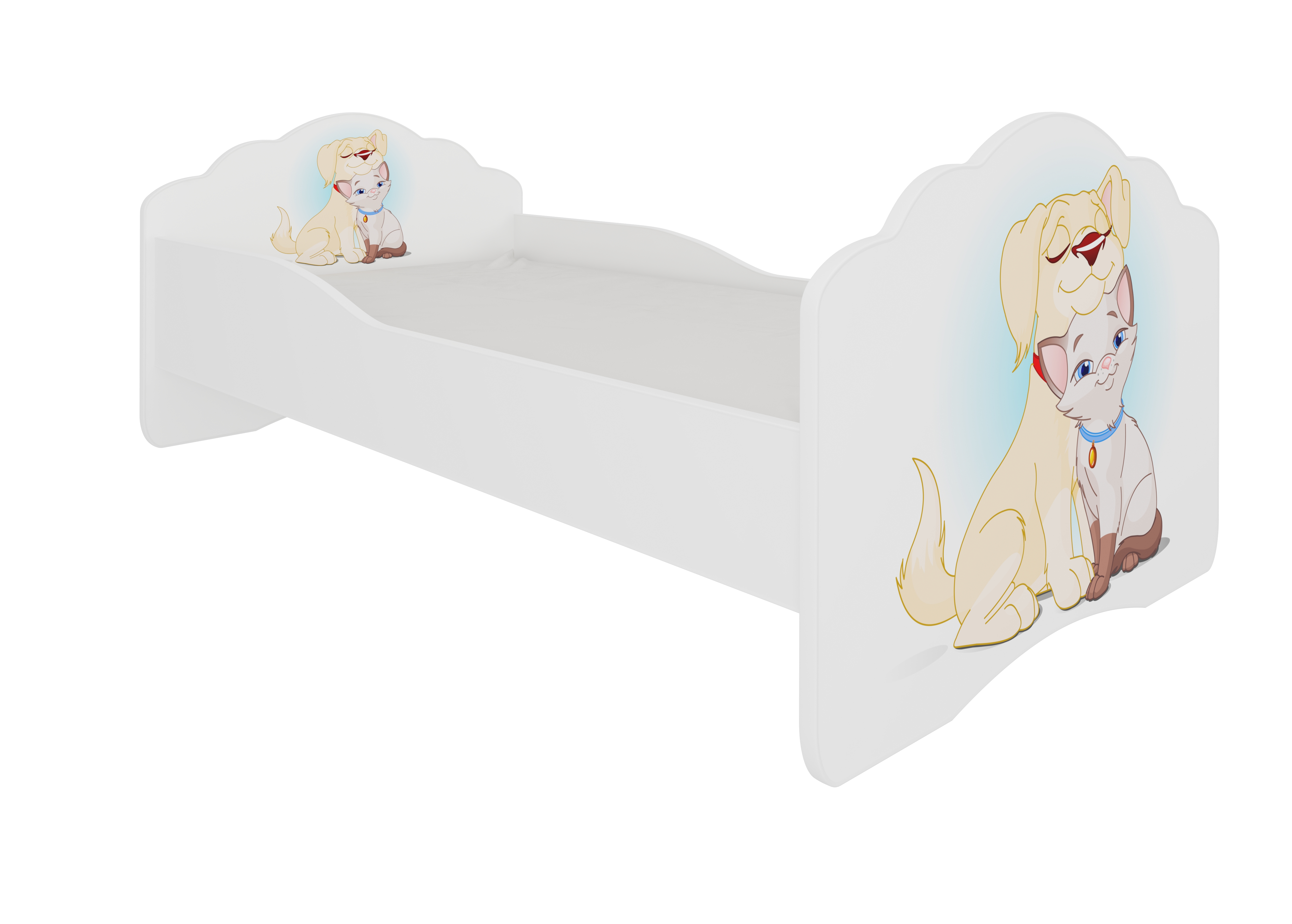 Dječji krevetić 140x70 cm Cassi (s rešetkom i madracema) (pas i mačka)