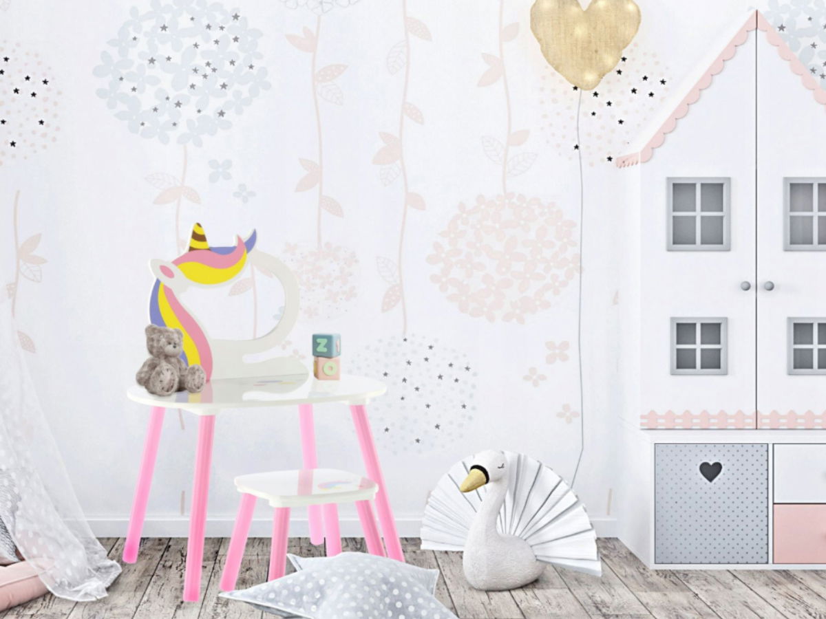 Dječji toaletni stolić s tabureom Lillyann (bijela + ružičasta)