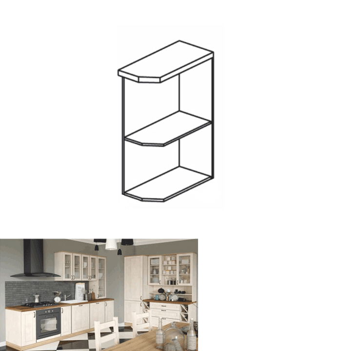 Donji kuhinjski ormarić s jednom policom. Korpus je od laminirane iverice u boji norveškog bora i ukrasima u boji divljeg hrasta.