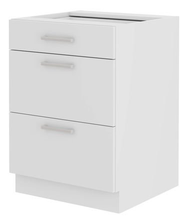Donji element s tri ladice iz modularne kuhinje u modernom stilu. Dostupne su i druge varijante ormara i regala.