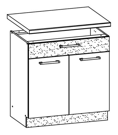 Donji kuhinjski ormarić s 2 vrata, namijenjen za smještaj ispod sudopera ukupne širine 80 cm. Sudoper nije uključen u cijenu.