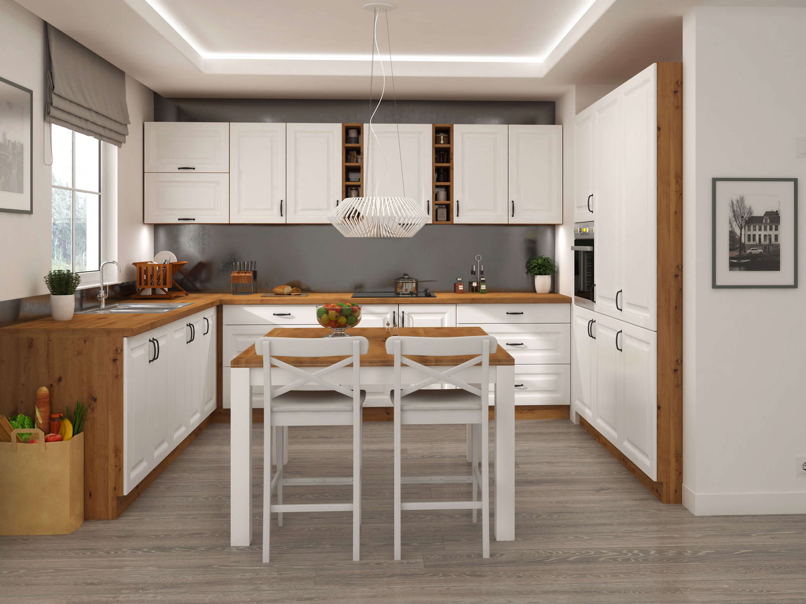 Korpus: Hrast Artisan + Front: Bijela