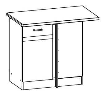 Donji kuhinjski ormarić s vratima ukupne širine (uključujući i gornju ploču) do 100 cm. Prilikom montaže možete odabrati stranu otvaranja vrata.
