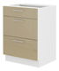 Donji element s tri ladice iz modularne kuhinje u modernom stilu. Dostupne su i druge varijante ormara i regala.