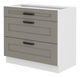 Donji element s tri ladice iz modularne kuhinje u rustikalnom stilu. Dostupne su i druge varijante ormara i regala.