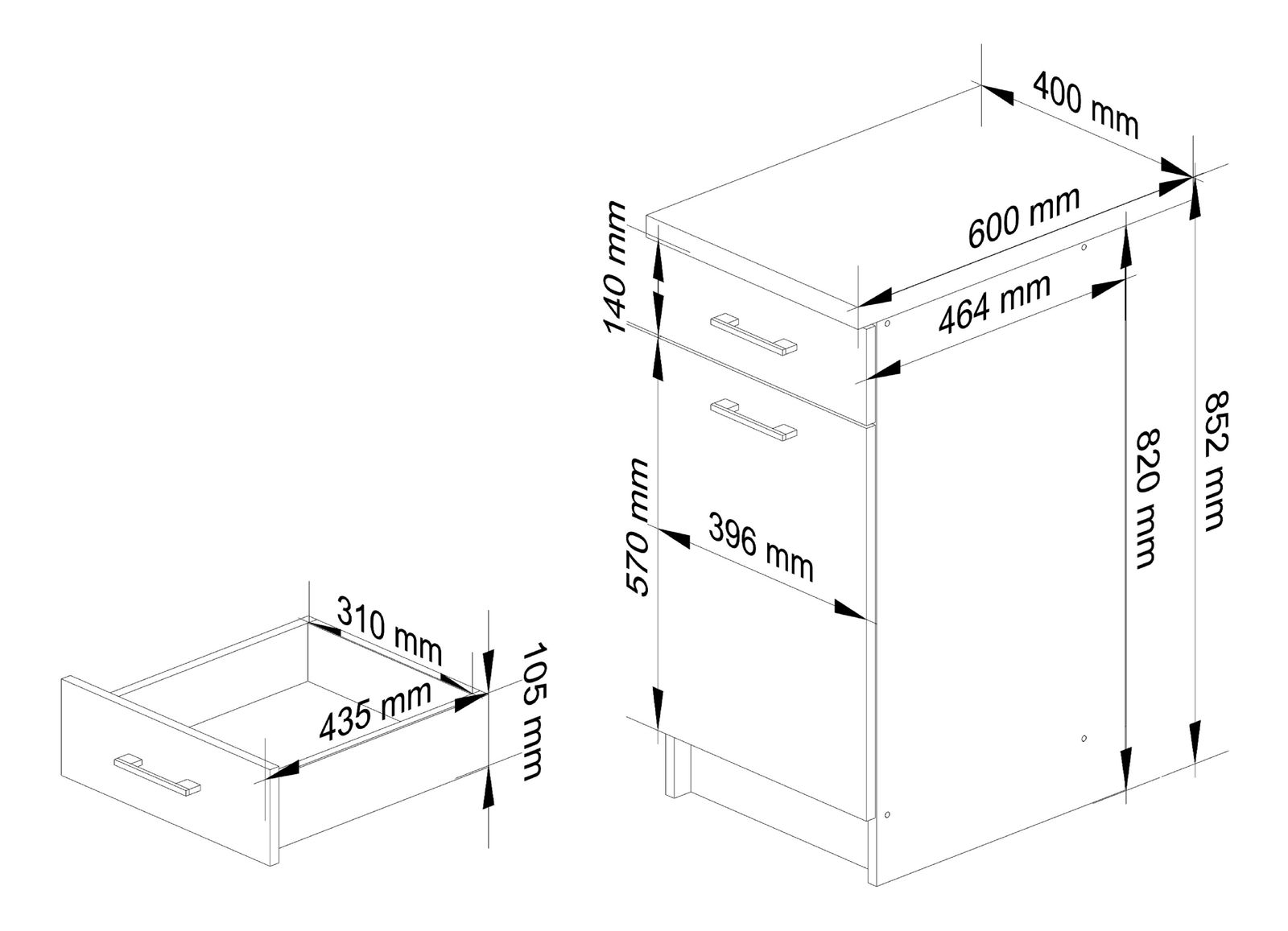 Donji kuhinjski ormarić Ozara SZ40 SZ1 (bijela + grafit sjaj)