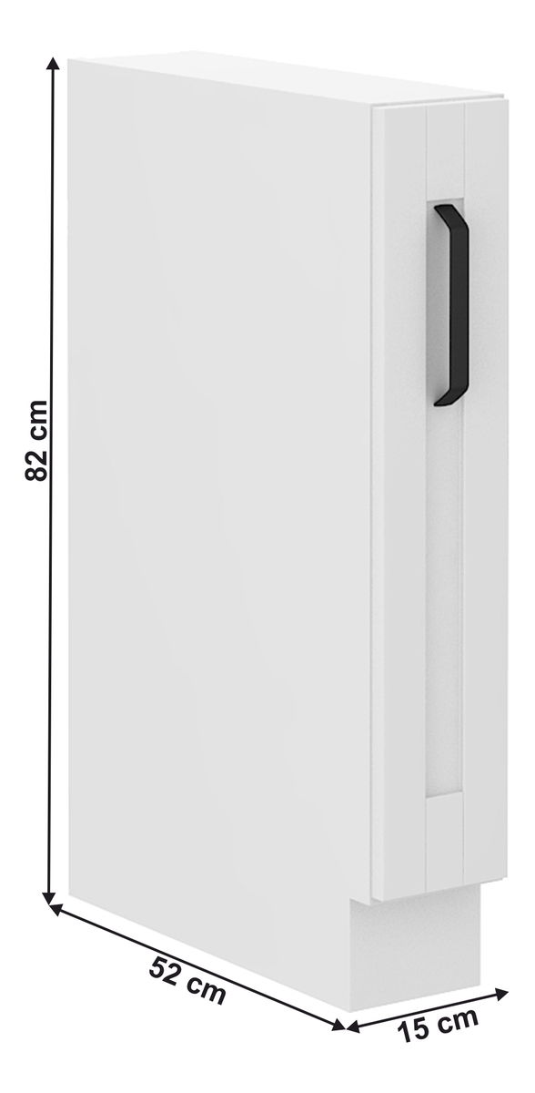 Donji ormarić s izvlačivom košarom Lesana 1 (bijela) D15 CARGO visine 82 cm, širine 15 cm i dubine 52 cm idealan je izbor za praktično rješenje kuhinje. Linije ove kuhinjske garniture su čiste i elegantne, a kombinacija bijele boje s dekorom hrasta artisan unosi toplinu i stil u prostor. Kuhinja Lesana izrađena je od kvalitetne laminirane iverice (DTD), otporne na mehanička oštećenja. U ponudi se nalaze zatvoreni i otvoreni gornji i donji elementi, visoki ormarić za namirnice te dodatna oprema poput vrata za perilicu posuđa. Donji ormarić Lesana D15 CARGO opremljen je izvlačivom metalnom košarom i isporučuje se s donjom lajsnom, bez radne ploče.