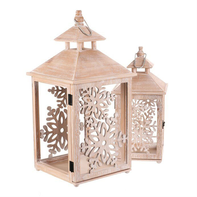 Drveni fenjer 2 kom Pahuljice (prirodna)