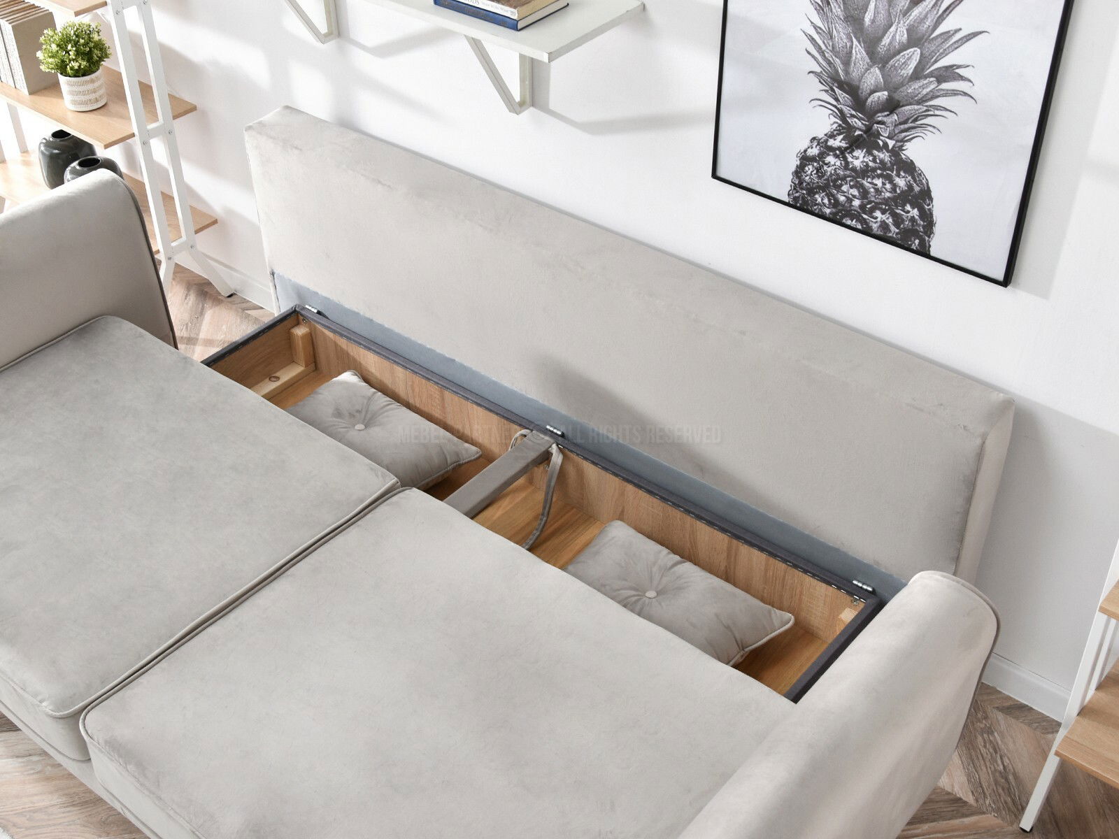 za svakodnevno spavanje, s jastucima, sjedište ispunjeno pjenom, spremnik za posteljinu