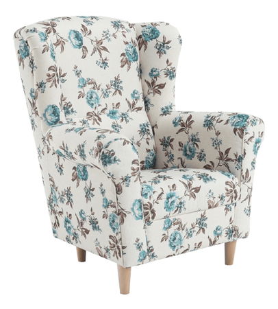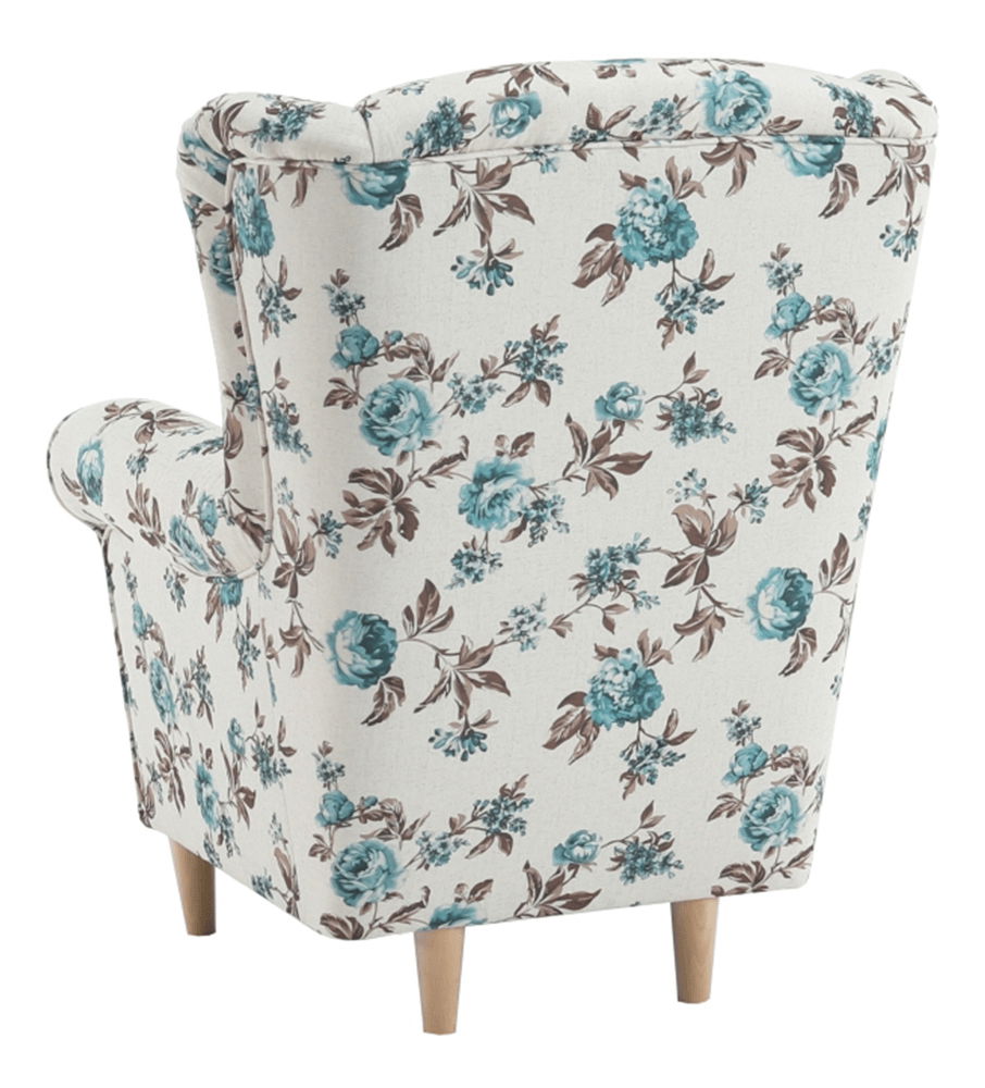 Fotelja s naslonom za glavu, drvenim nogama i dizajnu Rose 14.