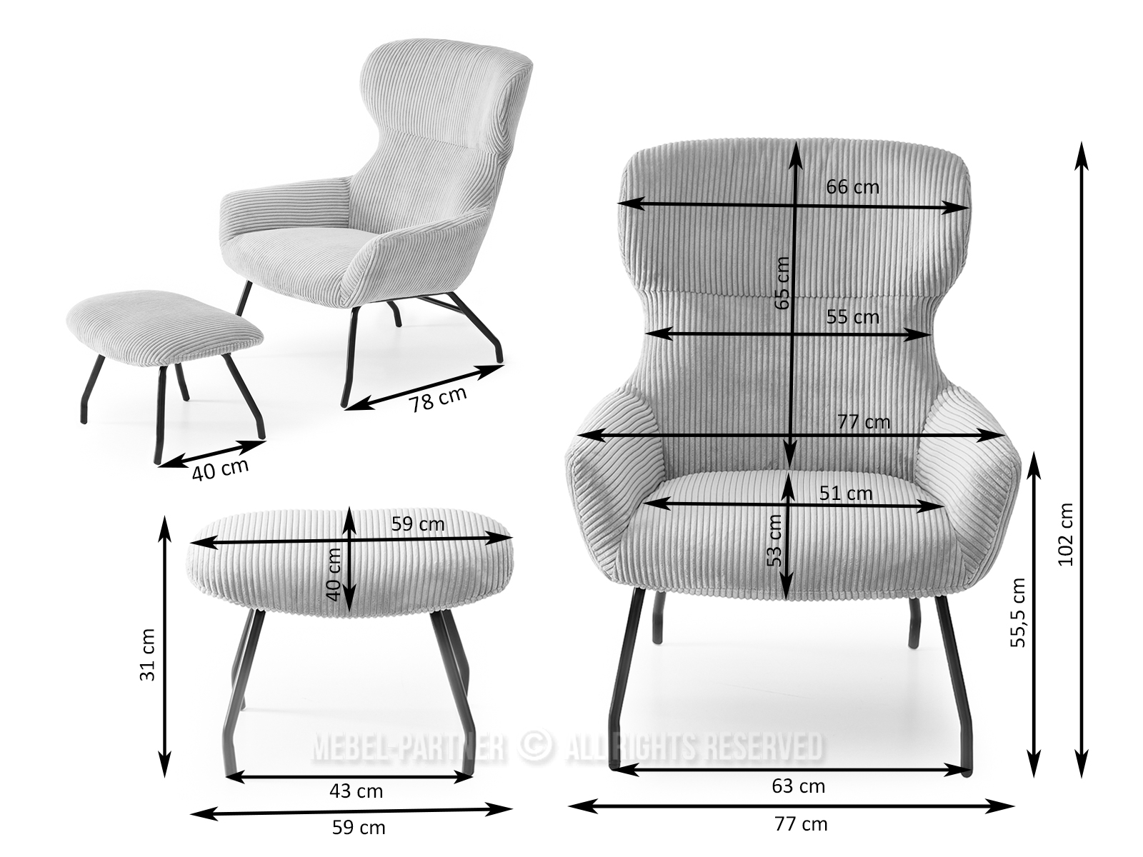 s naslonima za ruke, baza 4 noge, s osloncem za noge