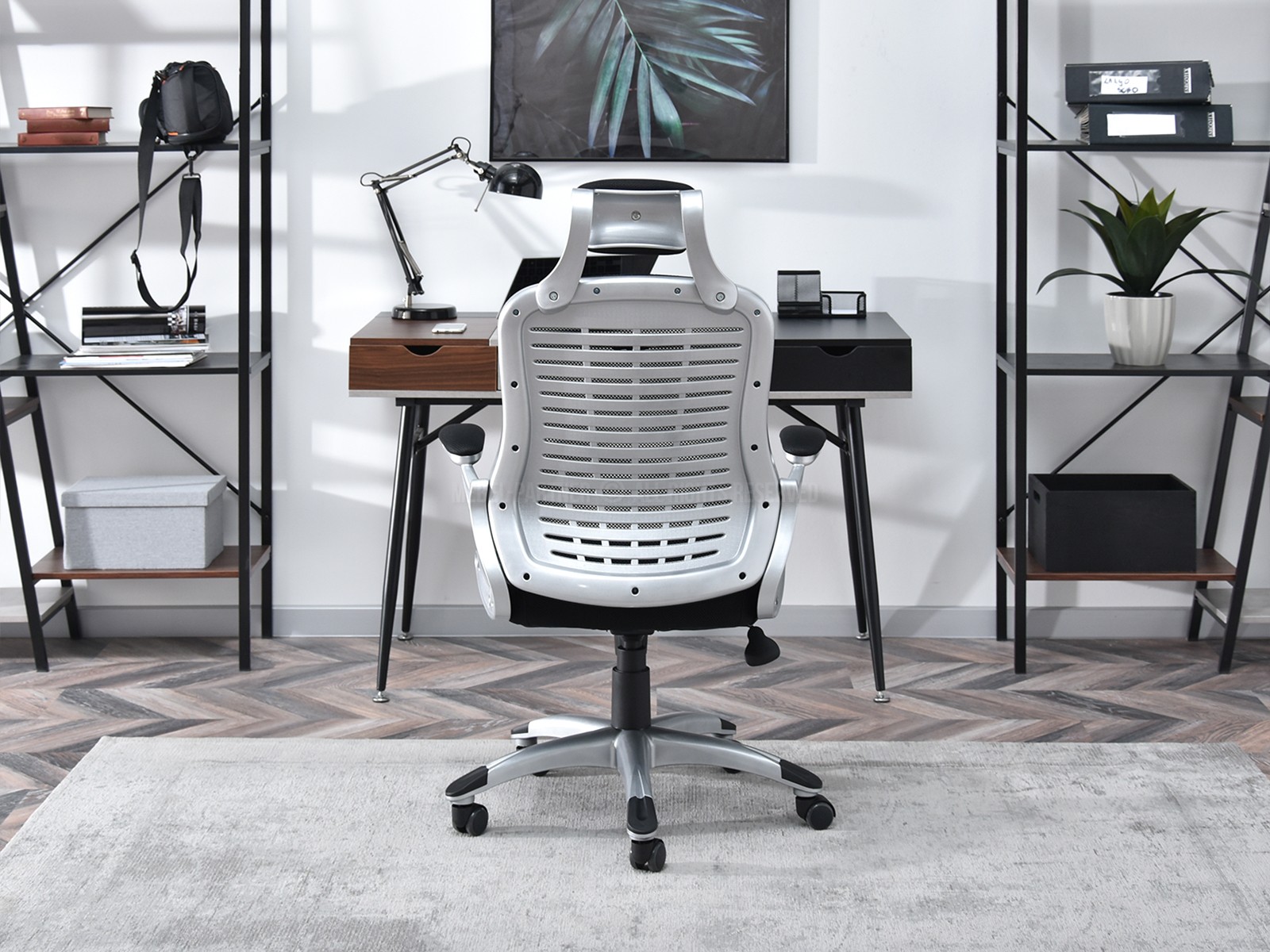funkcija ljuljanja, okretno sjedište, s naslonima za ruke, središnja baza s kotačima, podesiva visina, s naslonom za glavu