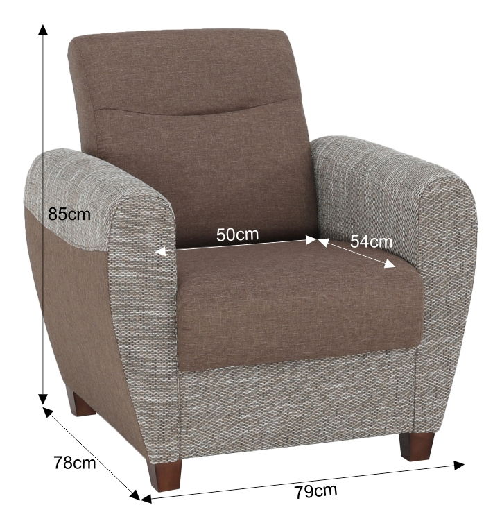 Materijal i boja: korpus šenil Berlin 3 + sjedeći dio savana 25 smeđaOtpornost tkanine Savana prema Martindale testu: 80 000 ciklusaOtpornost tkanine Berlin prema Martindale testu: 55 000 ciklusaDimenzije (ŠxDxV): 79x78x85 cmDubina sjedala: 54 cmVisina sjedala: 44 cmNosivost po osobi: 90 kg