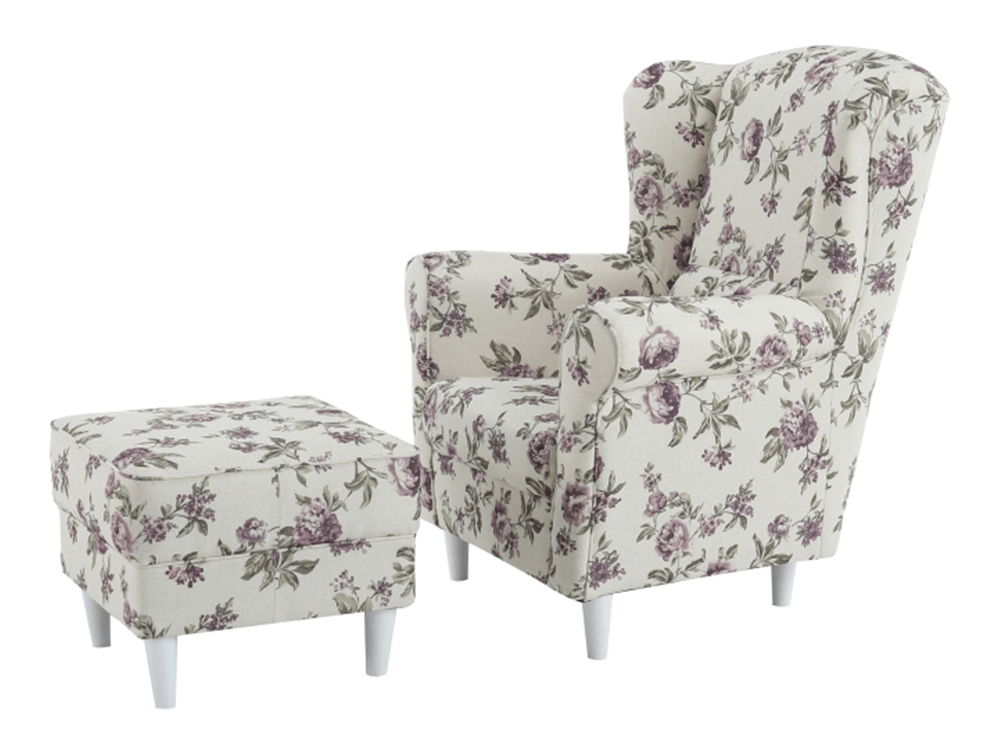 Fotelja s cvjetnim uzorkom uz koju ide i praktičan tabure.