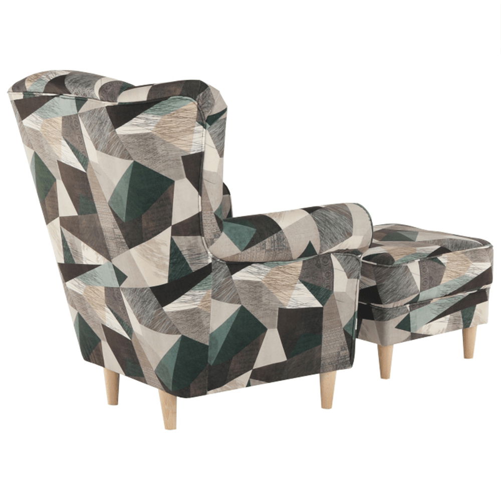 Fotelja s tabureom Aevo (smeđe zeleni uzorak)