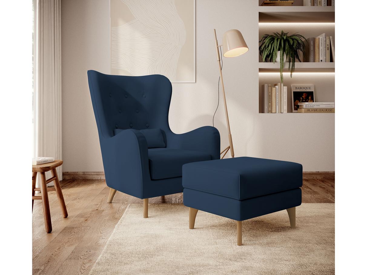 Fotelja s tabureom Calimero II (mornarsko plava + bukva)