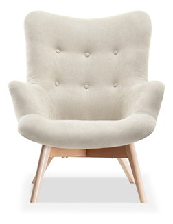 Fotelja sa ušima - najpopularnija vrsta fotelje. Naziv je dobiola po tome što fotelje ovog tipa imaju dijelove na naslonu koji lagano strše i stvaraju, takoreći, manje uši. Nagnuta je u polusjedeći položaj i možete udobno nasloniti glavu zahvaljujući bočnim lukovima.