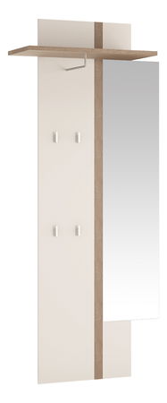 Panel za vješanje odjeće s ogledalom izrađen od kvalitetne iverice. Prednji dijelovi su izrađeni od MDF ploče bijele boje - visoki sjaj, s elegantnim dodacima smeđe boje tartufa.