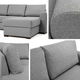 Struktura sjedala: drveni okvir + valovita opruga + filc + 11cm debela T2844 pjena, struktura naslona: drveni okvir + HDF ploča + 1cm debela T2844 pjena, funkcija sklapanja, funkcija spavanja, kutna garnitura oblika U, dva prostora za odlaganje posteljine, jastuci uključeni u cijeni (7 velikih) – sa patentnim zatvaračem, naslon u obliku jastuka, drvene noge (tamni orah), samostojeći kut (tapeciran štofom)
