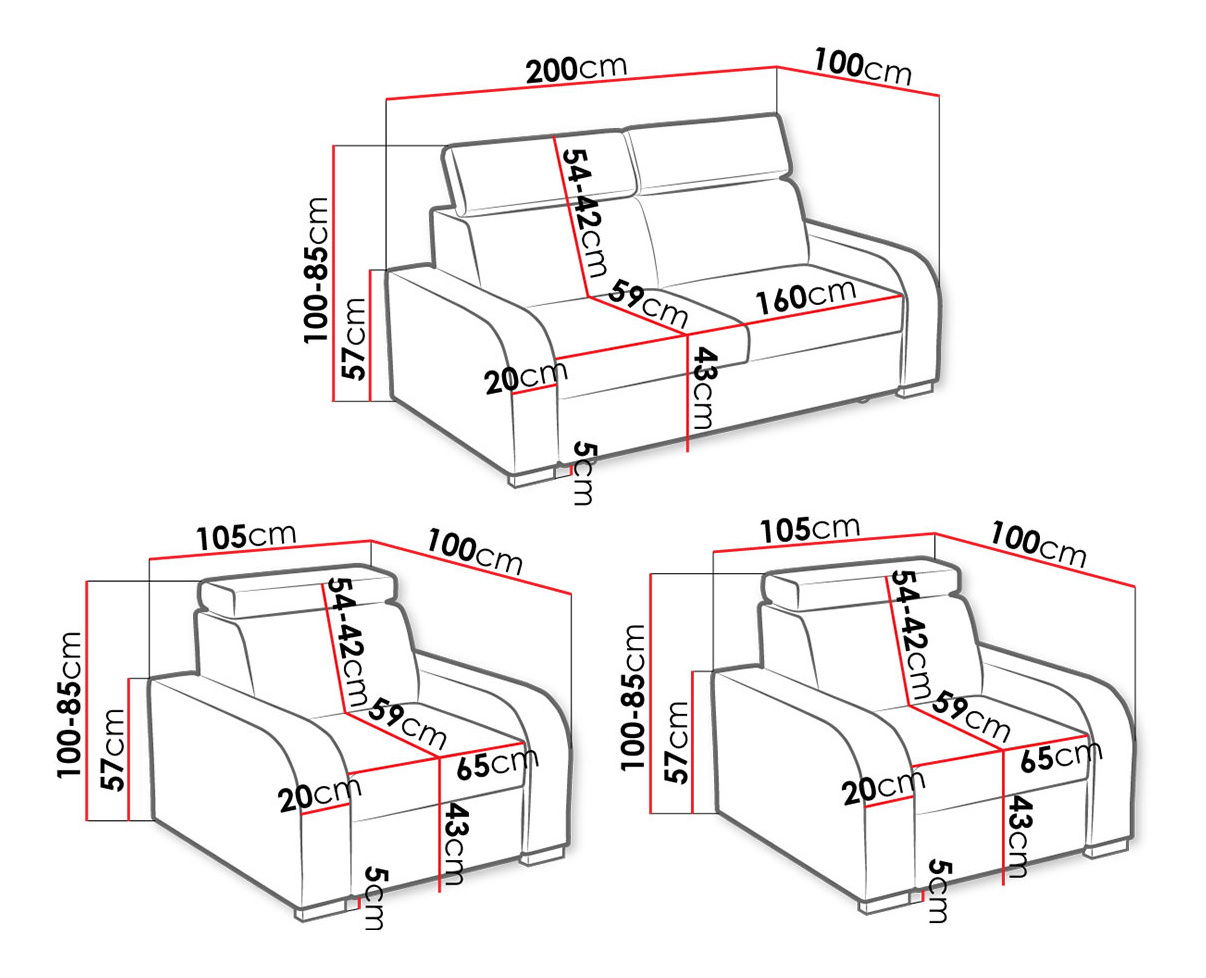 T30 / 30 pjena + opruga tipa B,T23/15 pjenasti nasloni za glavu.Nema funkcije spavanja.Plastične noge.Podešavanje naslona za glavu.Tapecirani naslon fiksno pričvršćen.Slobodno stojeća sofa (tapecirana tkaninom).