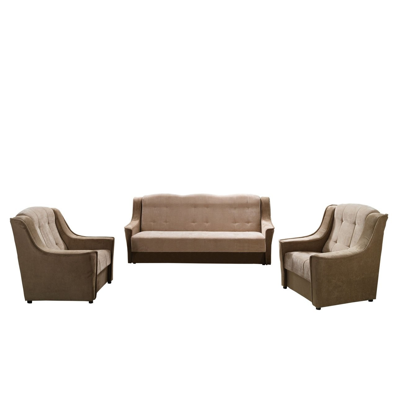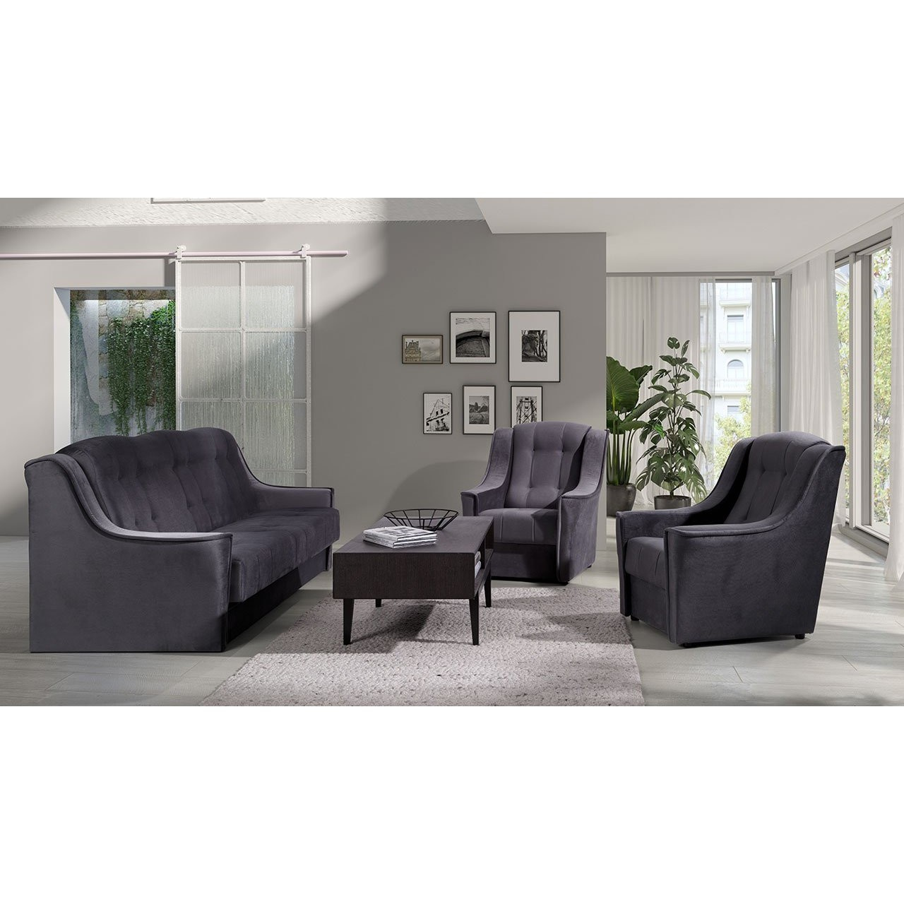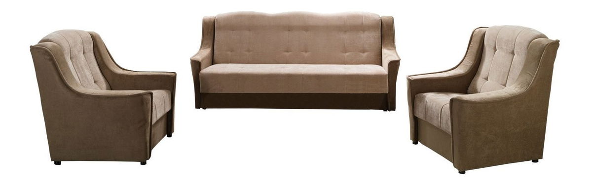 Garnitura je idealan izbor za one koji traže udobnost i stil. Računate li pri organiziranju obiteljskog druženja s svakim centimetrom? Zaboravite na komplicirane izračune, kupite udobnu garnituru 3+1+1 Margaret i uživajte svi u potpunom komforu. Tko će zauzeti mjesta u foteljama, a tko će sjediti na sofi, ostaje samo na vama. Dimenzije: sofa: duljina: 217 cm, širina: 93 cm, visina: 90 cm, ležajna površina: 120x185 cm 2x fotelja: duljina: 90 cm, širina: 83 cm, visina: 93 cm Karakteristike sofe: prostor za pohranu: da, na razvlačenje: da, drvena konstrukcija + iverica, visokoelastična pjena Karakteristike fotelja: drvena konstrukcija + iverica, visokoelastična pjena Jamstvo: 24 mjeseca.