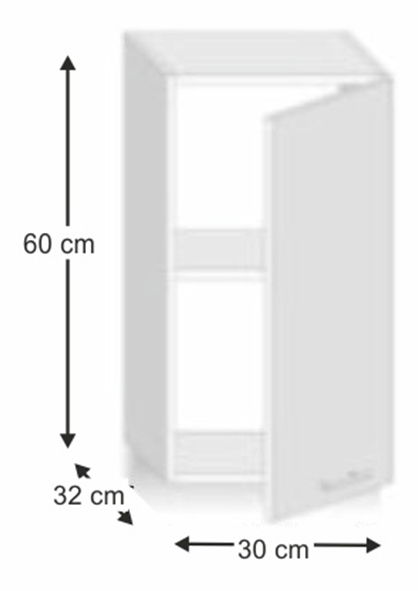 Gornji kuhinjski ormarić s 1 vratima od laminirane iverice visokog sjaja High Gloss.