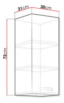 PrikazGornji element je idealan izbor za one koji traže udobnost i stil. Dimenzije: širina: 30 cm, visina: 72 cm, dubina: 31 cm. Izrađeno: korpus: laminirana iverica – boja: siva, vrata: MDF ploča obrubljena PVC-om, metalne ručke, sustav tihog zatvaranja. Jamstveno razdoblje: 24 mjeseca.