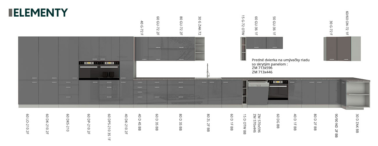Gornji kuhinjski ormarić Milo 50 GU-36 1F (siva + bijeli sjaj)