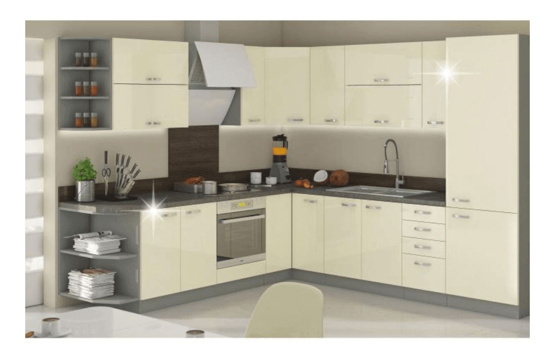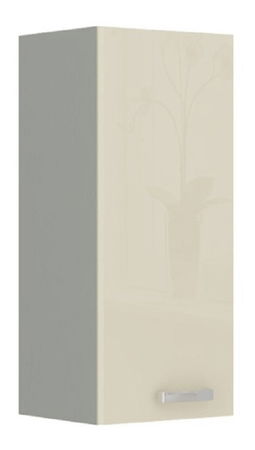Gornji kuhinjski ormarić širine 30 cm, visine 71,5 cm i vratima s tihim sustavom zatvaranja. Ručke su metalne, materijal je MDF ploča, korpus je sive boje, a vrata su visokog sjaja crvene ili krem boje.