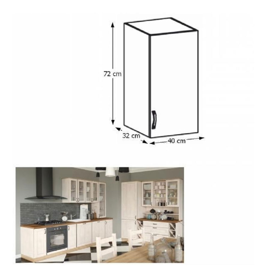 Gornji kuhinjski ormarić provansalnom stilu. Kombinacija boja bor norveški + divlji hrast.