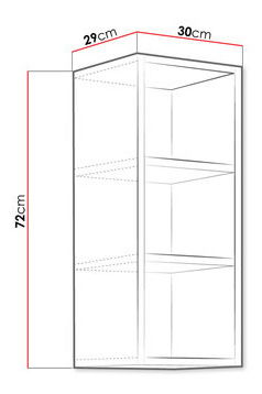 Gornji kuhinjski ormarić sa policama idealan je izbor za one koji traže udobnost i stil. Dimenzije: širina: 30 cm, visina: 72 cm, dubina: 29 cm. Izvedba: laminirana ploča debljine 16 mm prekrivena melaminom. Garancija: 24 mjeseca.