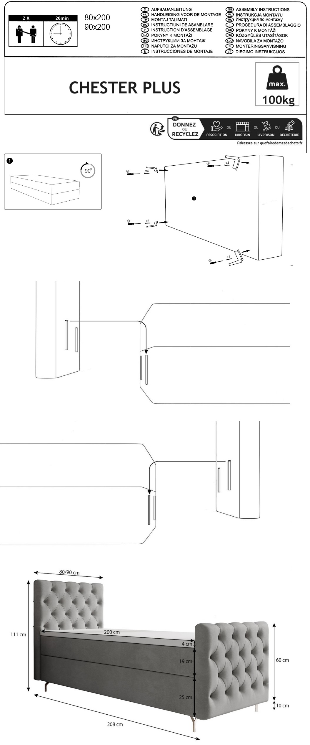 Jednostruki krevet 80 cm Clinton Bonell (siva) (s podnicom, bez prostora za odlaganje)