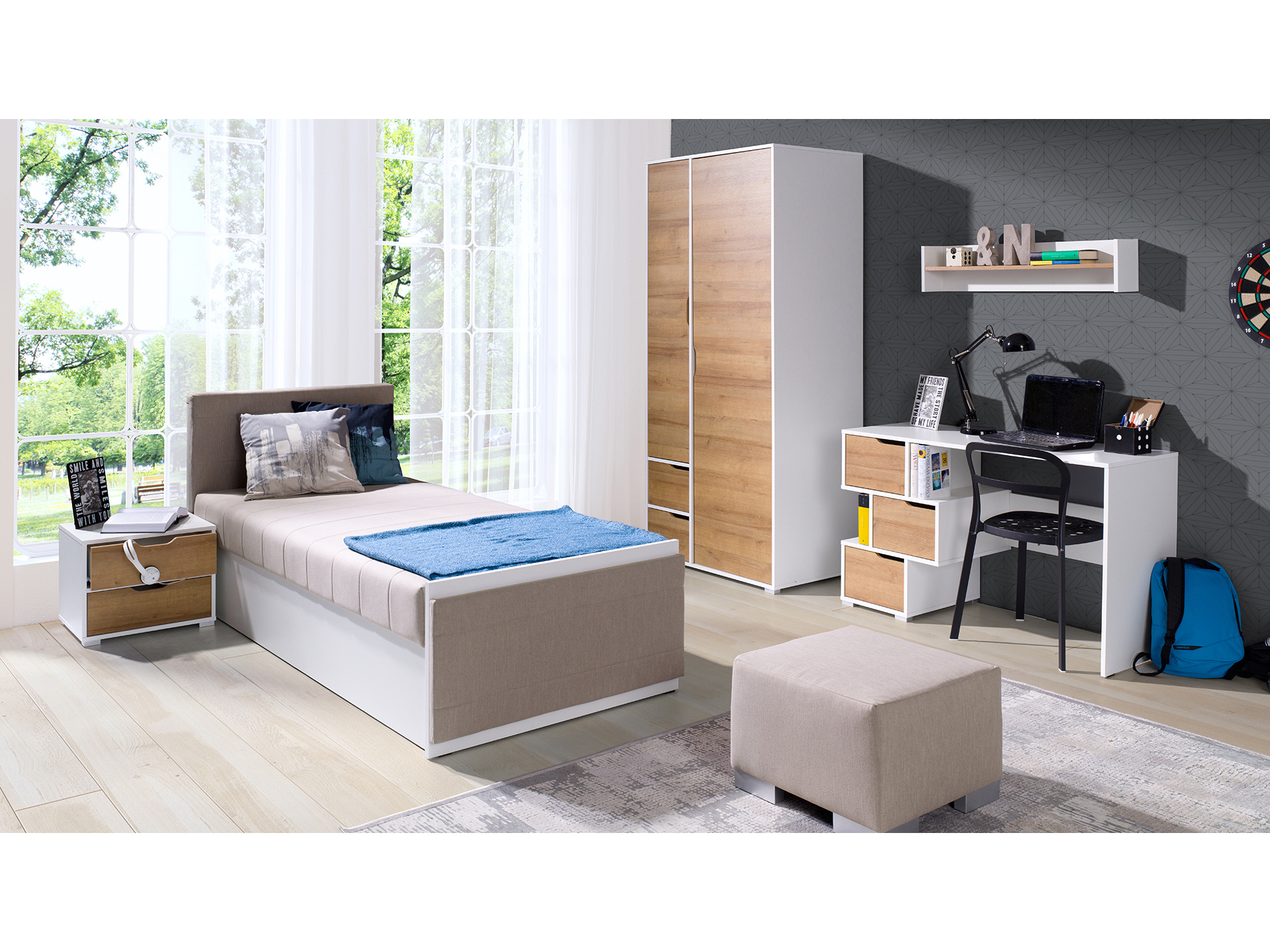 Jednostruki krevet 90 cm Iweta P (bijela mat + bež) (s podnicom i madracem)
