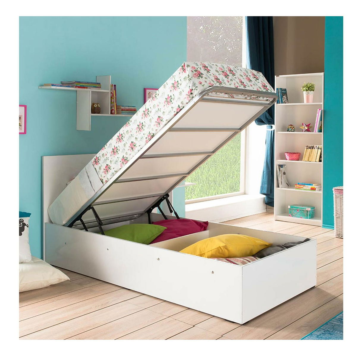 Jednostruki krevet 90 cm Kalabora (s podnicom) (s prostorom za odlaganje) (bijela)