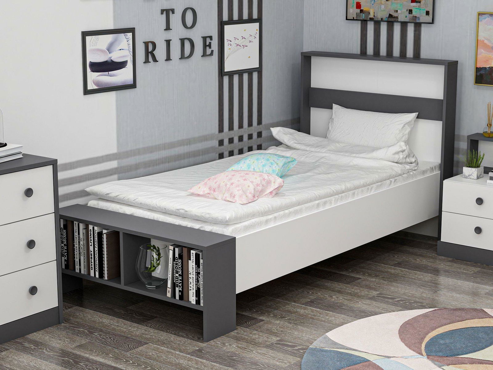 Jednostruki krevet 90 cm Live (antracit + bijela)