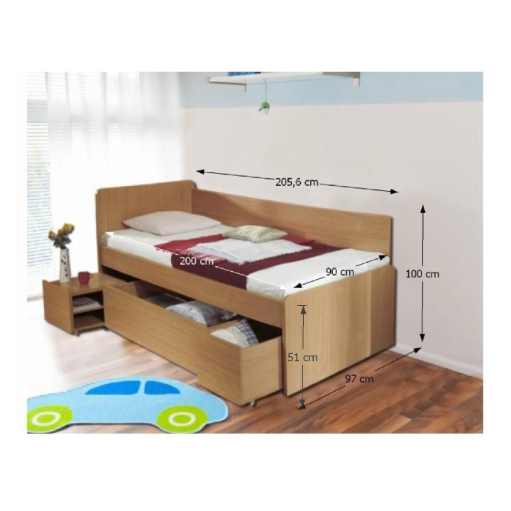 Jednostruki krevet Onley u neutralnoj boji bukve. Površina za spavanje 90 x 200 cm. Isporučuje se bez podnice i madraca.