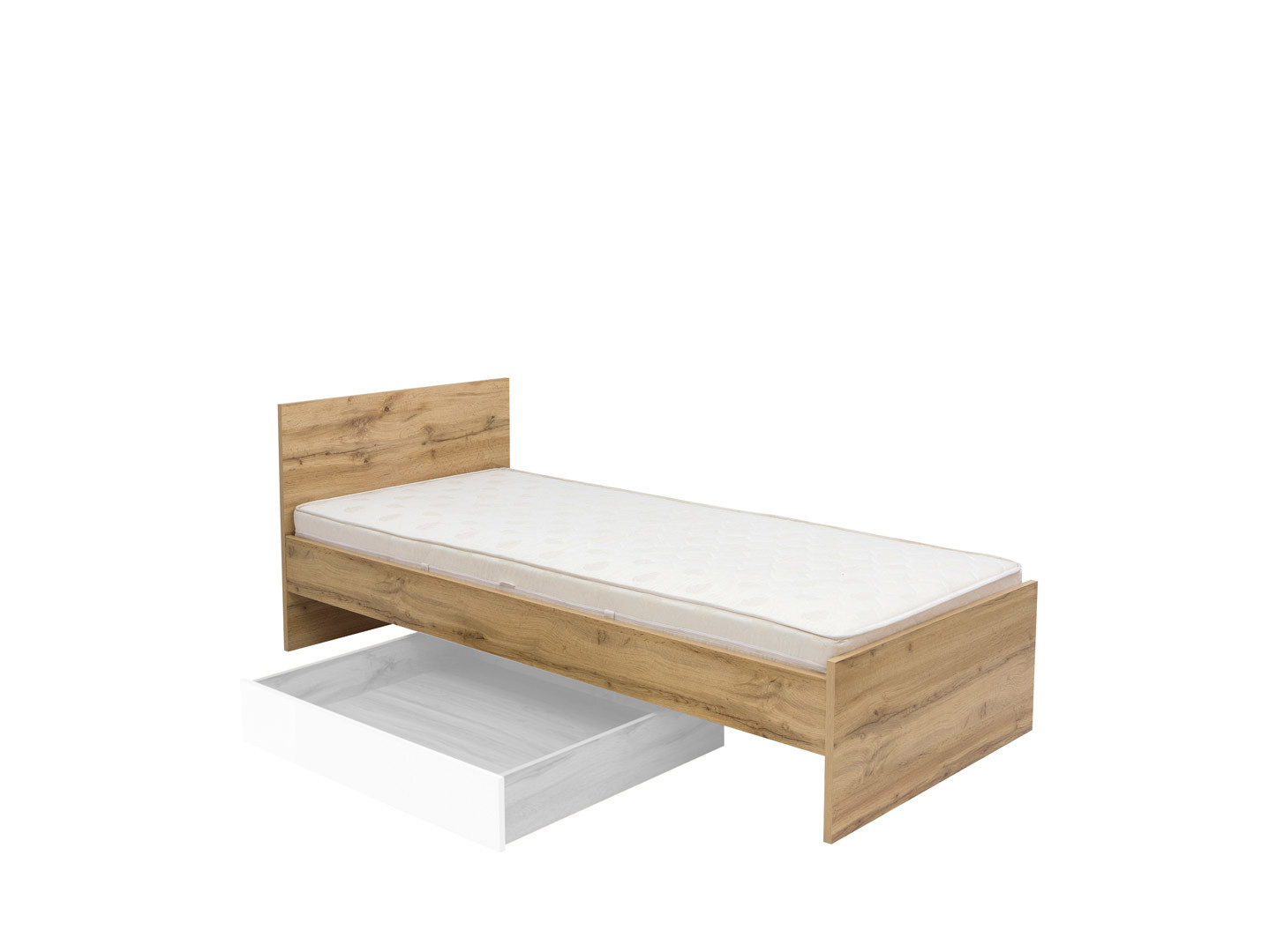 Nakon napornog dana u školi ili na poslu, zaslužujete dobar odmor. Ovaj jednostruki metalni krevet karakterizira jednostavan dizajn, u boji wotan hrasta te zasigurno će učiniti Vaš interijer ugodnim. Krevet ima visoko uzglavlje od 80,7 cm, na koje se možete udobno nasloniti dok čitate svoju omiljenu knjigu. Također je moguće naručiti prostor za odlaganje, u koji možete spremiti posteljinu i ostale potrepštine. Maksimalna nosivost kreveta je do 100 kg. Visina sjedišta je 39 cm.