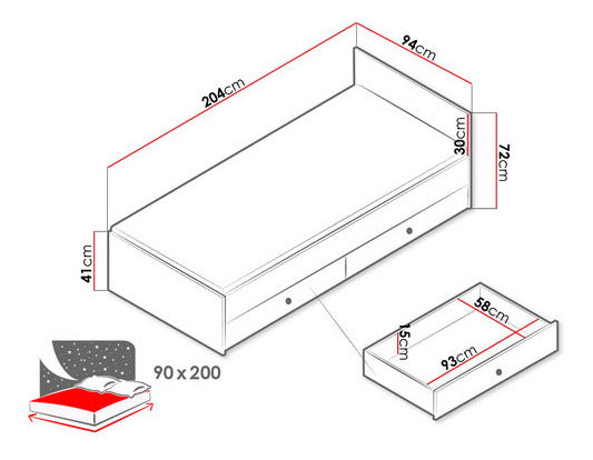 madrac (90 x 200 cm) nije uključen u cijenu kreveta – može se naručiti
